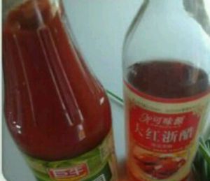 糖醋汁 一勺料酒两勺酱油三勺白糖四勺白醋,搅拌一下。锅开倒进去,变成中火也可以稍微小一点。