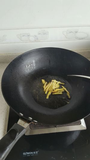 排骨焯水,冷水冲一下沥干。放油(无需太多,只炒不炸)下排骨翻炒,同时加入黄酒、老抽、生抽少许再翻炒片刻。加入镇江醋和冰糖,加水焖煮。(放好油先将姜片放下略炸)
