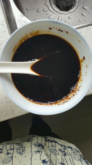 一勺料酒两勺酱油三勺糖四勺醋碗里调制倒进锅里