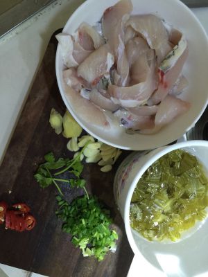 鱼清理好后,切成鱼片,薄一点,块大一点