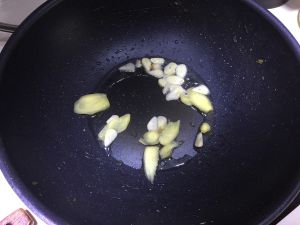 锅里热油放入姜片和蒜片爆香