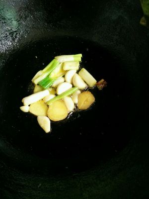 在锅中倒入适量色拉油,放上生姜,葱白,爆一下