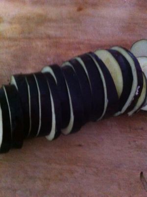 把茄子切片约0.5cm厚度,太薄会在后面煎的过程中易碎