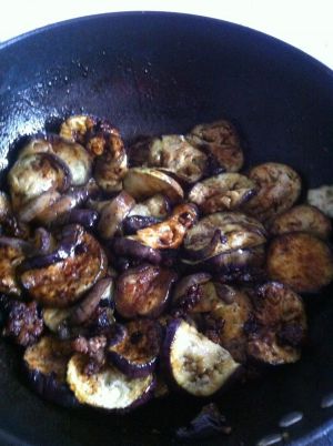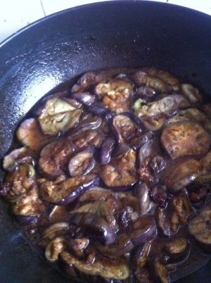 然后在放入炸好的茄子 可以假一点酱油 颜色更好看一些