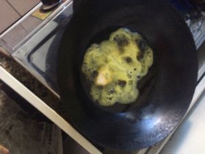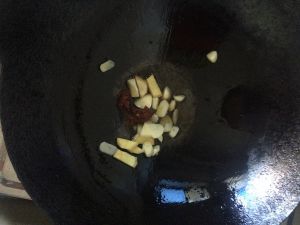 放点油 在油没热的时候放入蒜 姜 这样可以入味我还放了一点豆瓣酱