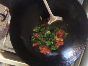 闻到香味后放入青椒西红柿