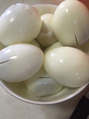 鸡蛋煮熟,剥壳,划上几刀