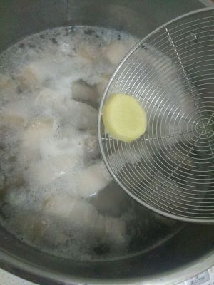 水开后,倒入切好的肉,加一片姜片,煮3-5分钟