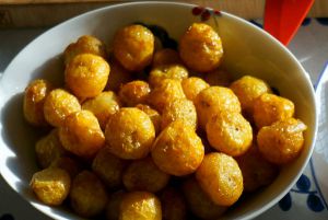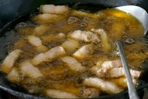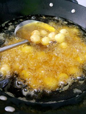 菜油我是用平时已经制熟了的。用起来方便,洋芋刮皮洗干净冷油下锅炸至表皮金黄色