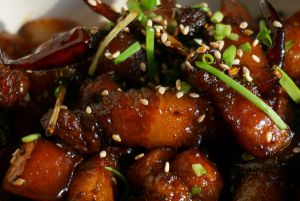 最后装盘,上面撒些葱花,这道美味的五花肉就做好了
