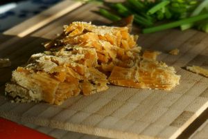 切的差不多大小匀称,烧过的皮子没猪毛,制作好也糯糯的口感