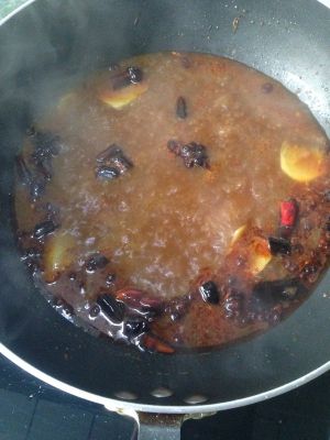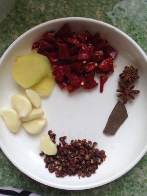 锅里加少许油,放入葱姜蒜红辣椒,小火煸炒,