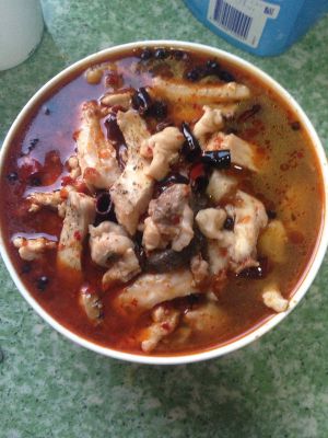 然后另起一锅油 榨香鱼中的辣椒 麻椒这样香辣的水煮鱼就做好了