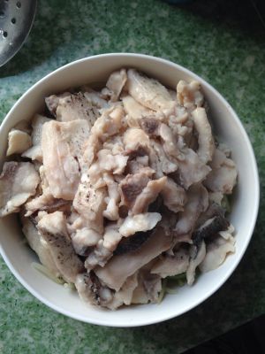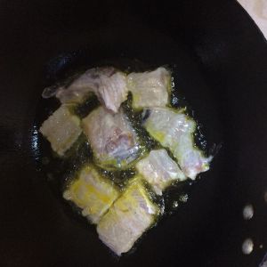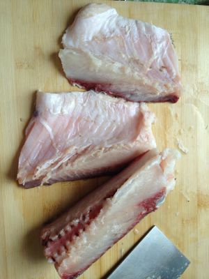 先将鱼身分开剔出鱼刺切片 鱼骨分开切段