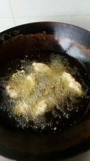 将鱼块抹干表面水分下油锅炸至金黄色捞出滤油;