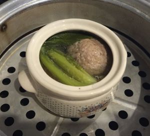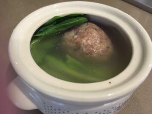 还剩一团肉加了点水淀粉,做成狮子头,加高汤清蒸。不想要炸的,直接蒸的。没加青菜,这是为了配色。