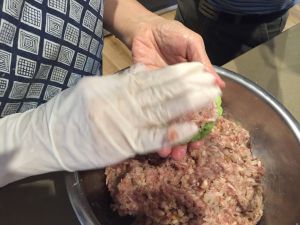 肉剁成茸,其余食材切末,加入调味料,顺一个方向搅上劲。