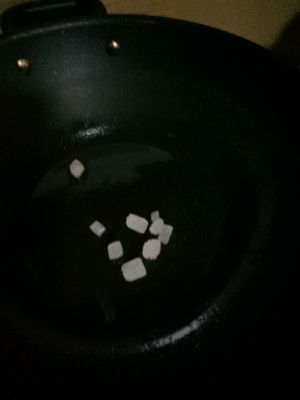 高压锅烧热,放白糖2汤匙,我做红烧肉从来不放油,炖出来自然就会有油,当糖化成糖浆,渐渐溶化炒成浅褐色时,倒入肉块,使每块肉都沾上糖色,把肉炒变色
