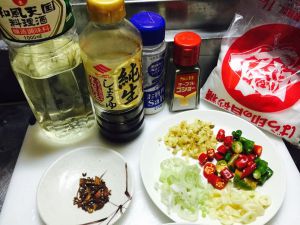 平底锅烧热入油,入花椒八角爆香后入葱姜蒜尖椒爆香。(喜欢老干妈的可以加一勺老干妈。)