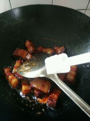 把肉夹出,放入冰糖炒出糖色,再把肉倒进去翻炒上色