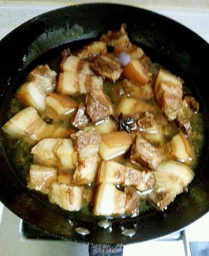 一小时后,加少许盐味精和大量的糖,然后大火收汁(这个时候人不能跑开啊,一直要翻炒翻炒的,这样上色会比较均匀)