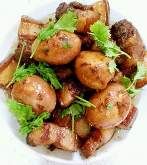 待汤汁只有少许时关火,把肉肉摆在汤盘里,将剩余的汤汁浇在上面,先拍一张吧呵呵。这就很有食欲了!