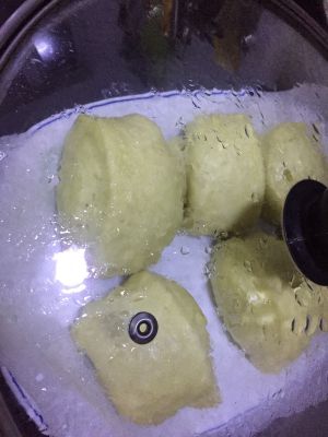 颜色变浅,馒头膨大,时间到了,关火,闷2分钟。