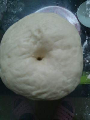 温水把适量发酵粉,等面发酵好了以後(我是放在电热毯里发酵的)弄成一个大的配一个小的面团
