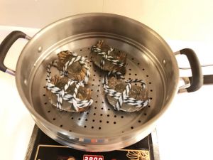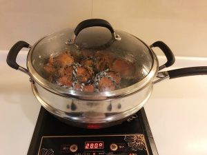 锅中放水烧开后将大闸蟹放入蒸锅内