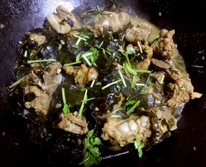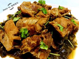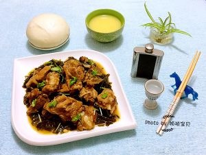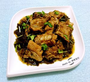 鲜美味浓的排骨炖海芥菜盛入盘中