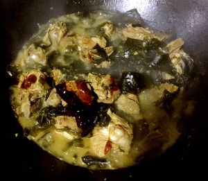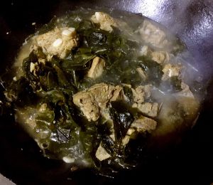 放入海芥菜和排骨同时炖五分钟