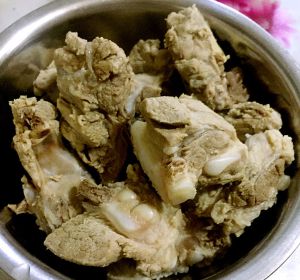 先把买回的寸排洗洗,准备好调料,还是老习惯,小丁儿的放调料盒,大块的直接放锅里。