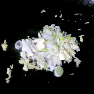 锅中倒入底油加热放入葱姜蒜爆香