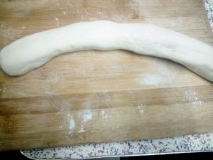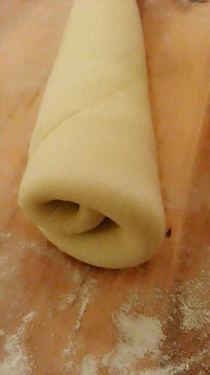 幹成一厘米厚度卷起来,幹长不要幹宽还要把它揉开呢
