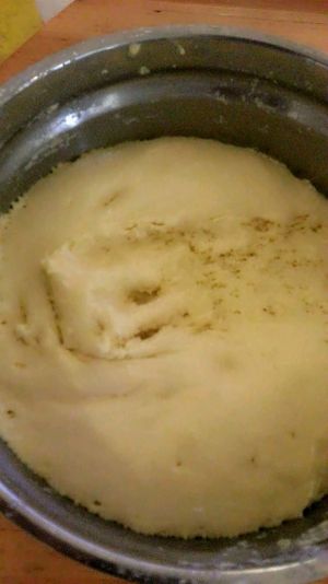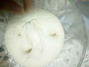 做就是搓成团一的面粉,拿个什么都好盖住面团慢慢发酵,时间是1个钟,如果有时间的,可以发酵都两个钟,这样子还更大,