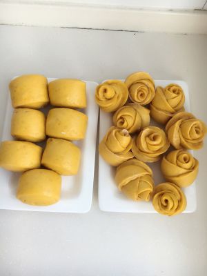 三克酵母用半碗温水化开加入适量南瓜泥和三碗面粉揉至面团光滑(期间一点一点加面粉至光滑)