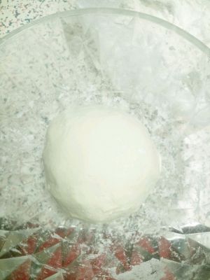 把面团揉至光滑即可(三光;面光,手光,盆光。),在容器上面铺上保鲜膜静待发酵两个小时。
