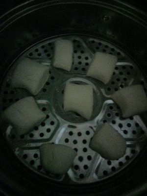 上锅,先把水煮开关火,让面团松弛20分钟,再大火蒸10分钟