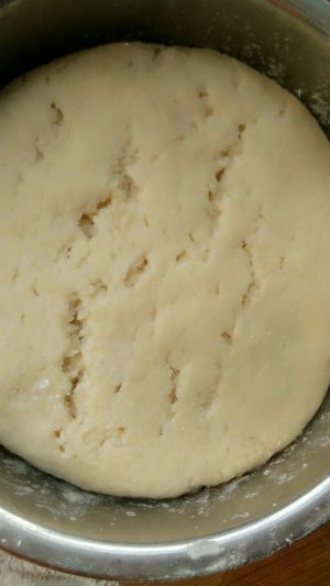 将面粉揉至成光滑不粘手的面团,盖上保鲜膜或者馒头盖子开始发酵(要大揉一揉更筋道)