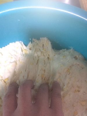 把面粉和成面团(软硬度可以摸摸自己的耳垂,比耳垂稍硬一点即可
