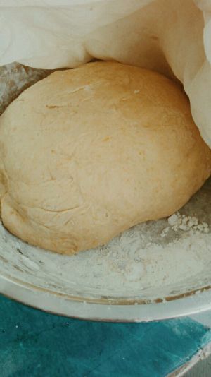 团揉至表面光滑后,放碗里用保鲜膜密封起来让面团发酵;