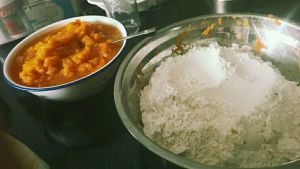 分三次加入南瓜