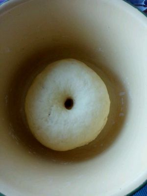 发酵大概两倍,手指中间按一下,洞不出来就好了