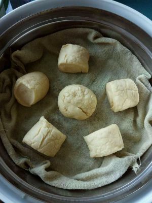 .把它们各自搅拌均匀,揉成光滑的面团,揉好后分别盖上湿毛巾进行一次发酵