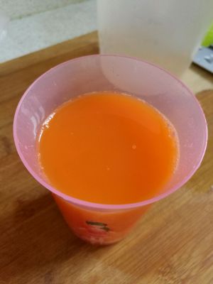 把胡萝卜切丁和白开水一起放入豆浆机中,选择果汁,开始