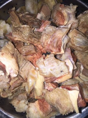 洗净牛腩,放入高压锅中,加清水,料酒,姜片,高压锅煮25分钟