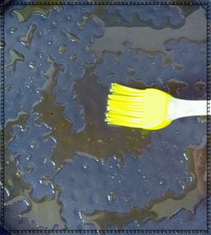 用筷子将裹满蛋液的馒头片,放入预热好的平底锅中。