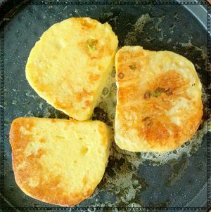煎至两面金黃,散少许盐和五香粉,即可出锅。