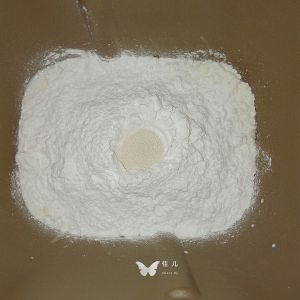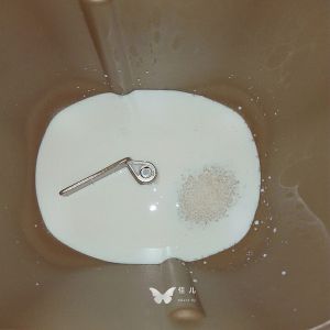然后在放入奶粉,中粉,在面粉顶部挖个洞,放入酵母。