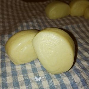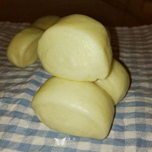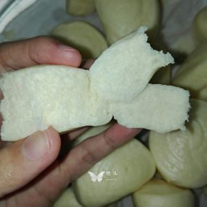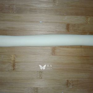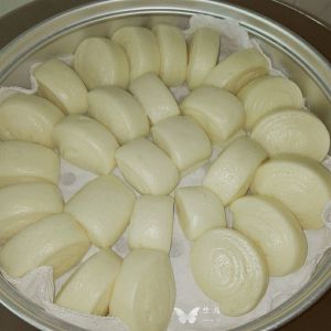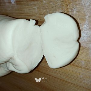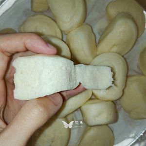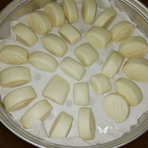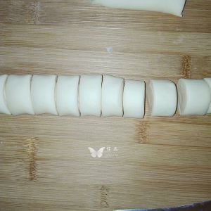 先把面团再揉10分钟,然后揉成一个长条,在切成一个个小刀切馒头,用手捏成如图这样一头尖一头圆的形状